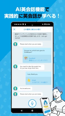 「英語学習、なかなか続かない」「忙しくて時間が取れない」とお悩みですか?本サービスは、スマートフォン一つでいつでもどこでも、英会話スクール品質の学習を可能にします。日本人の特性を深く理解し、50年以上にわたり効率的なメソッドを提供してきたイーオンが監修。目的に合わせた実践フレーズや学習のコツを、手のひらで気軽に習得。スキマ時間を最大限に活用し、毎日着実に英語力を向上させましょう。