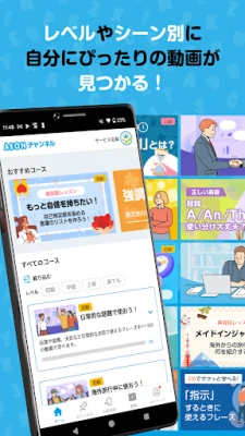 英会話イーオン監修の英語動画とAIドリルが、すべて使い放題。あなたの英語学習を強力にサポートし、実践的なスキルを効率的に習得できます。初心者から上級者まで幅広いレベルに対応。