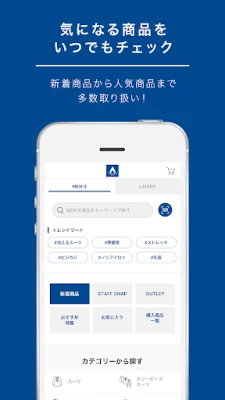 洋服の青山アプリは、公式メンバーズカード機能や限定クーポン、最新の店舗情報や商品ラインナップなど、お買い物をもっと便利にする機能を搭載。ビジネスウェア選びをスマートにサポートします。